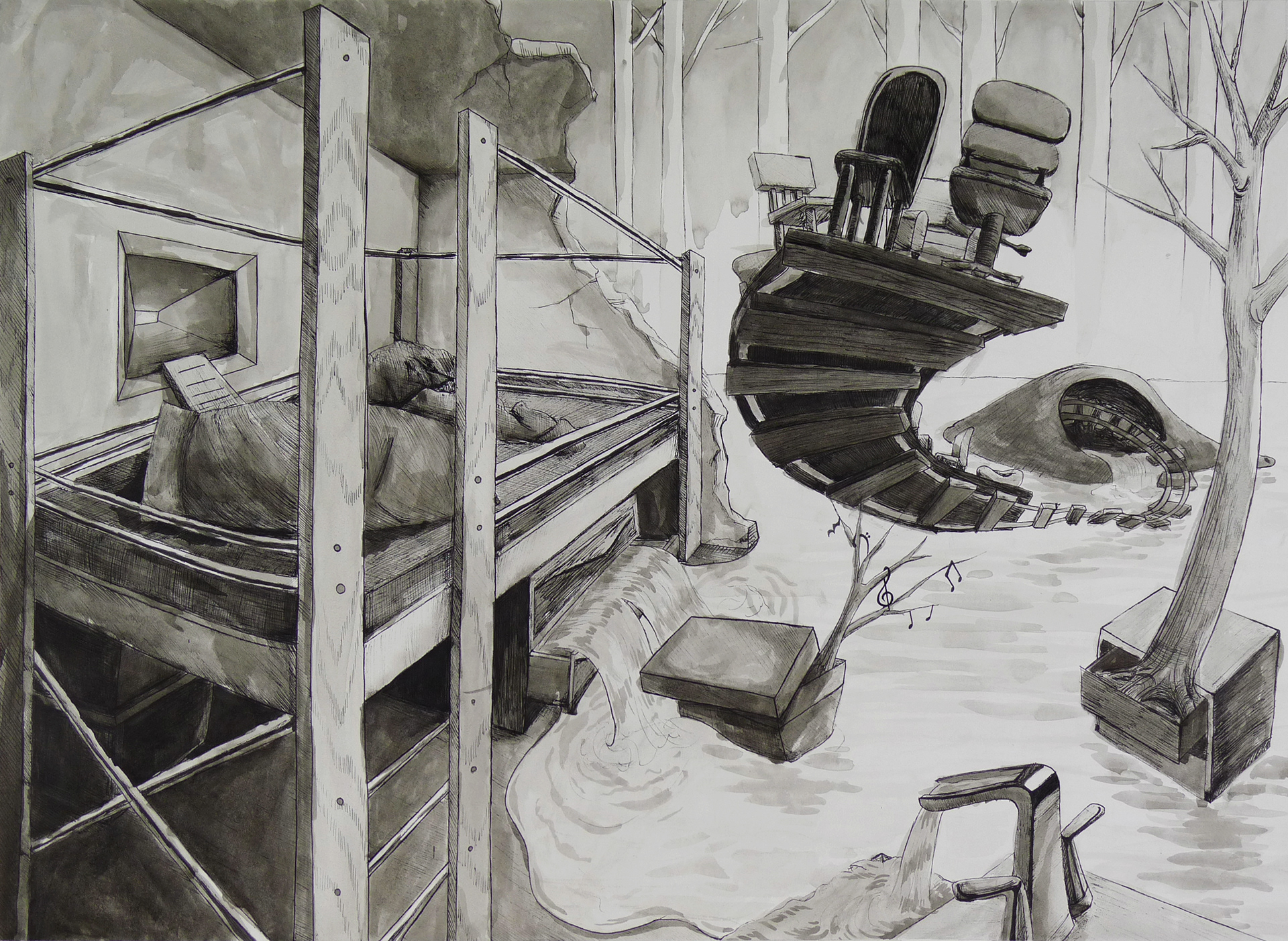 Ink and Wash on Paper, 16x22