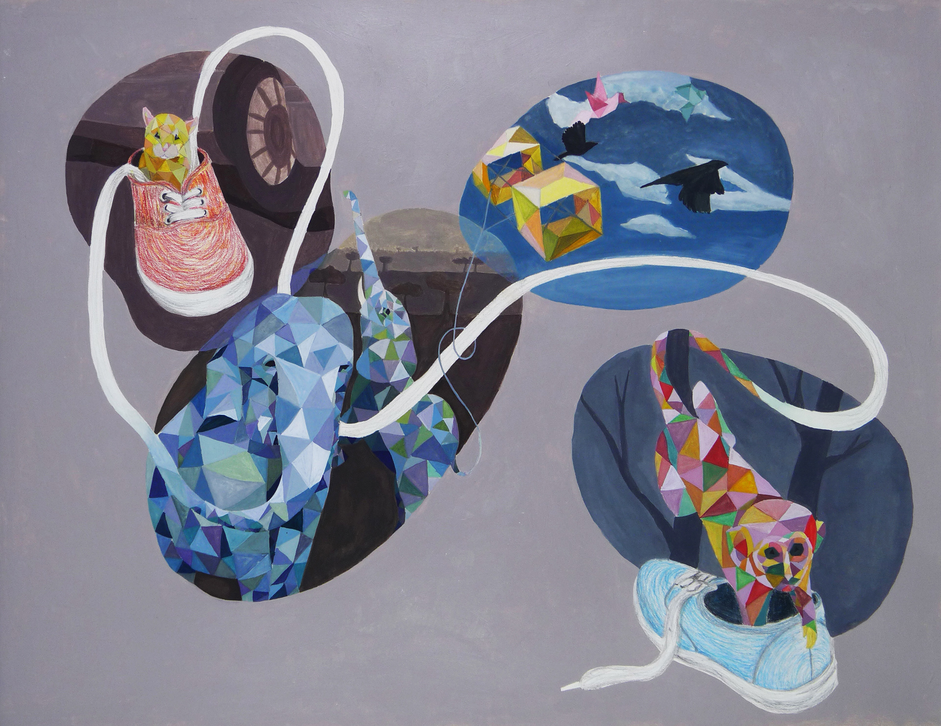 Gouache, Acrylic, and Colored Pencil on Paper, 18x22